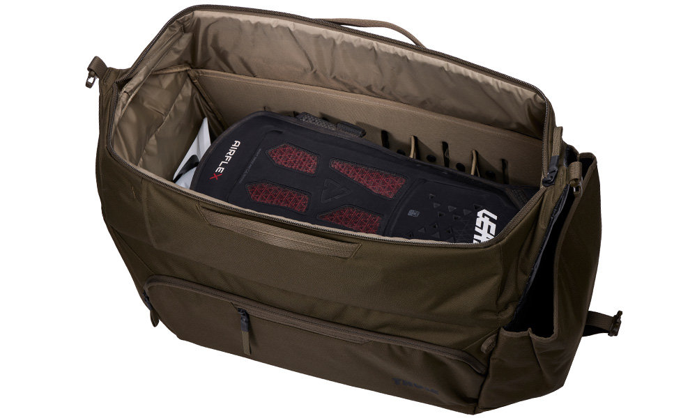 De Thule RoundTrip MTB duffel 70L beschikt over een aanpasbare binnenkant met volledig uitneembare verdelers, zodat rijders de indeling kunnen aanpassen aan hun eigen uitrusting. Grote beschermende pads, helmen, kledinglagen en complete fietstenues kunnen veilig en gescheiden worden opgeborgen. Speciale verdelers beschermen goggles en wrap-around fietsbrillen. In de panelen geïntegreerde vakken zorgen ervoor dat kleinere benodigdheden overzichtelijk en binnen handbereik blijven.