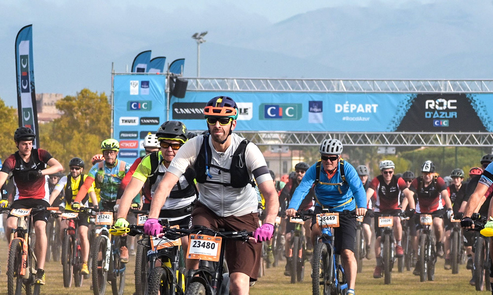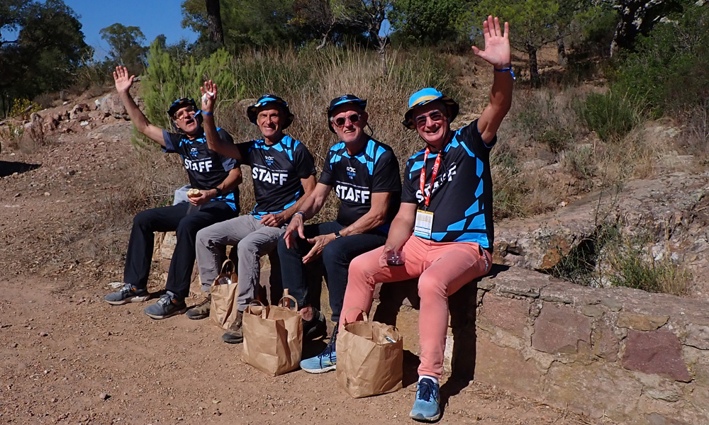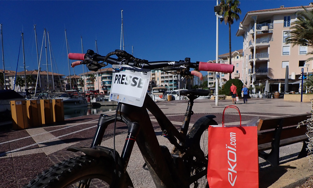 Het is woensdag. San. en ik rollen lekker naar het festivalterrein om onze startnummers af te halen. Voor mij dit jaar de Roc Altitude en voor San. de Roc Pédestre. Eenmaal fiets en eenmaal wandelschoenen. Hoewel je ook voor de wandeling stevige schoenen nodig hebt. Die Fransen sturen je ook letterlijk echt overal door- en overheen. Na een kort gesprekje met de organisatie en kleine wandeling over de beursopbouw rollen we terug langs de boulevard van Frejus. In de haven maken we even tijd voor een kopje koffie en genieten van de strakblauwe zon. Een schitterend jaar met bijna elke dag een straalblauwe lucht. Nee, er wordt zeker niet geklaagd over het weer.