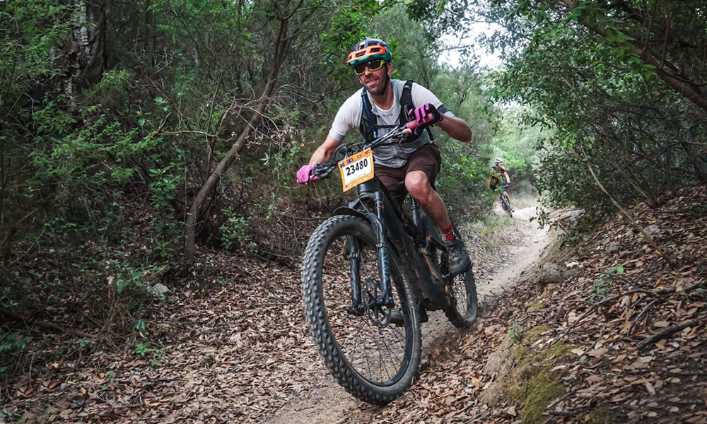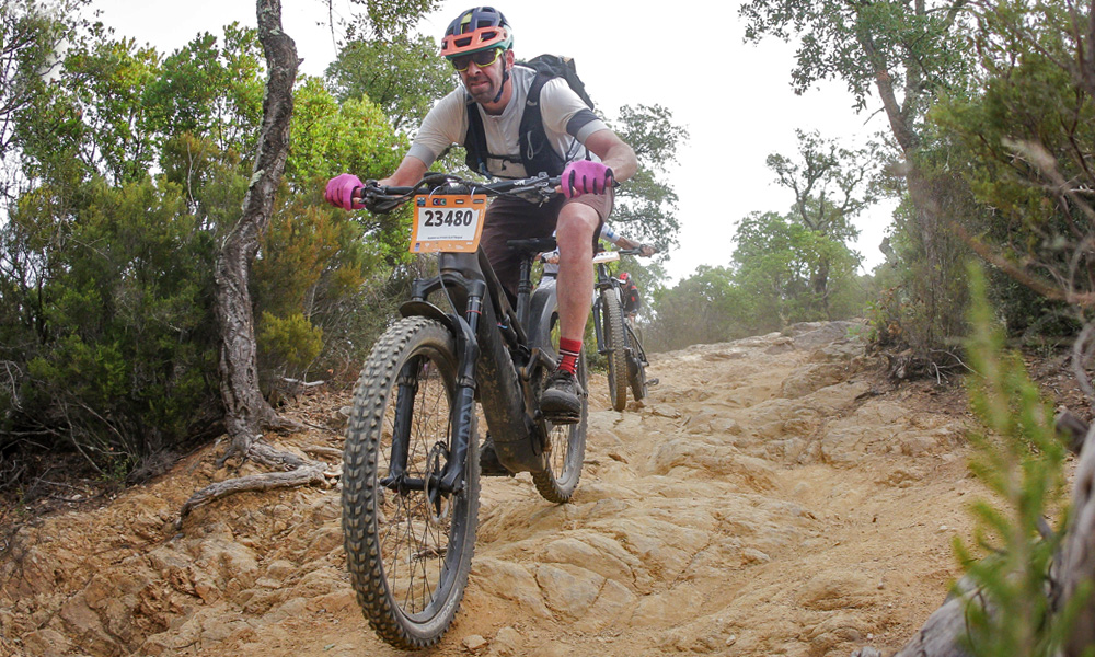 Het is 10:00 wanneer het startschot klinkt en we zijn van start. Vanwege het gortdroge parcours besluiten we om flink boven de begrenzing van de bike te rijden en bijna vooraan te rijden. Dit scheelt een hoop stof en verderop in het parcours ook een hoop opstoffingen. De eerste klim via Castelet toont zich en we halen ook hier weer enkele deelnemers in. So far so good. Op de brede paden van de klim werpen we een blik achter ons en verdulleme, het is ineens heel rustig geworden. Dit komt mooi uit want de afdaling van Le Fournel staat voor ons klaar.